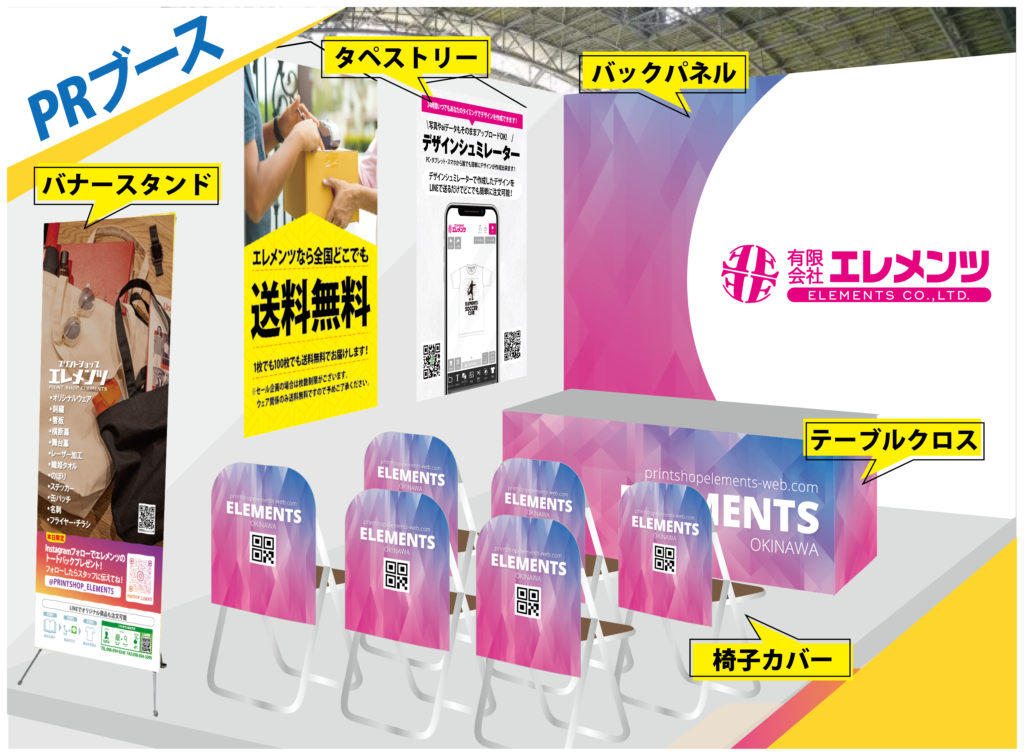 目を引く装飾と実用的アイテムでブースをトータルサポート!